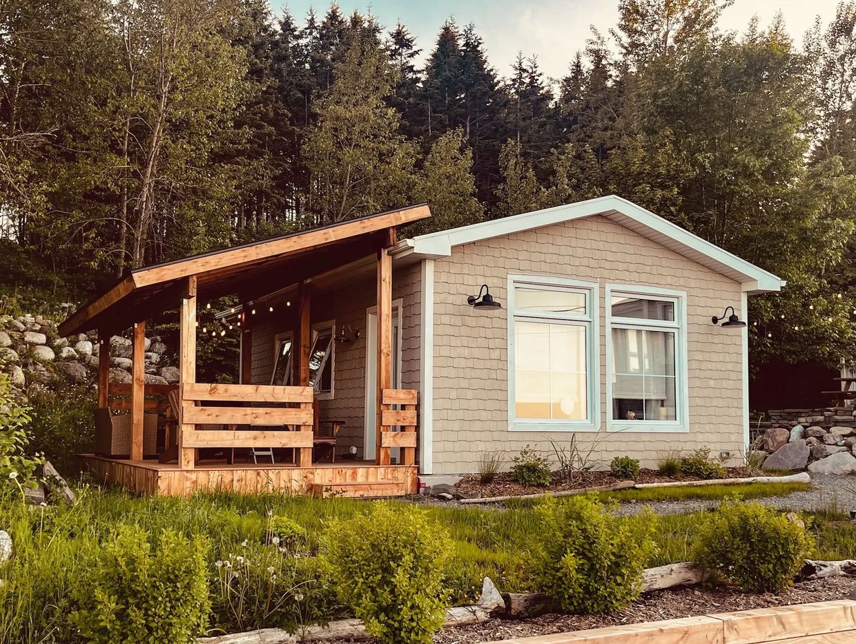 La maisonnette offre une vue imprenable sur le fleuve Saint-Laurent, reposant sur la plage de l'Anse-aux-Coques.